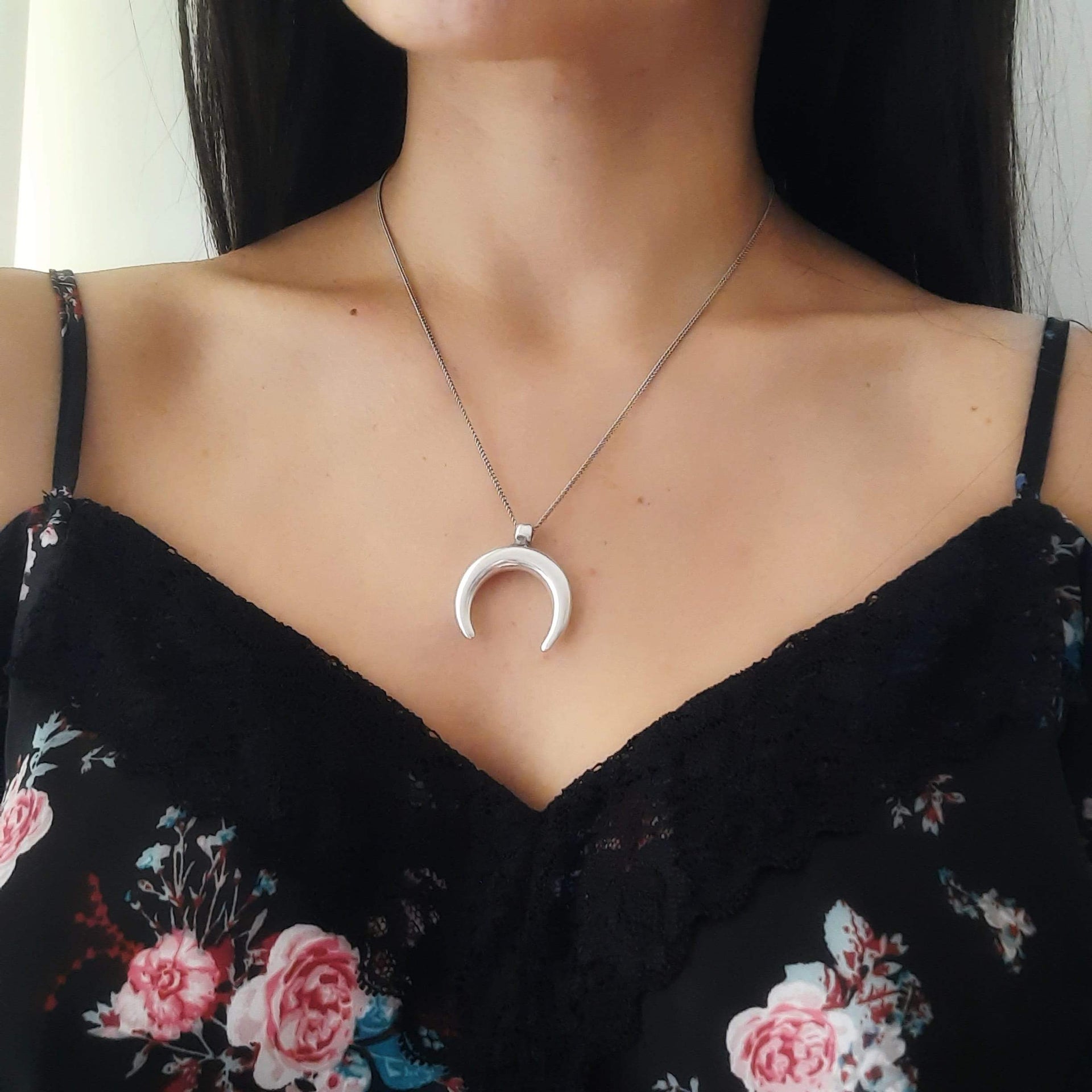 Schöne ethnische Halskette aus Silber im Tuareg-Style für Frauen mit Ahänger in Form eines Hornes. Hergestellt aus nickel- und bleifreiem Material. Super geeignet für den Alltag, als Geschenk oder um aus zu gehen!