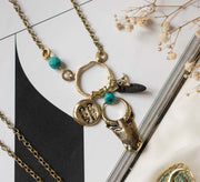 Lange goldene böhmische Halskette mit Anhängern - MINOTAURUS