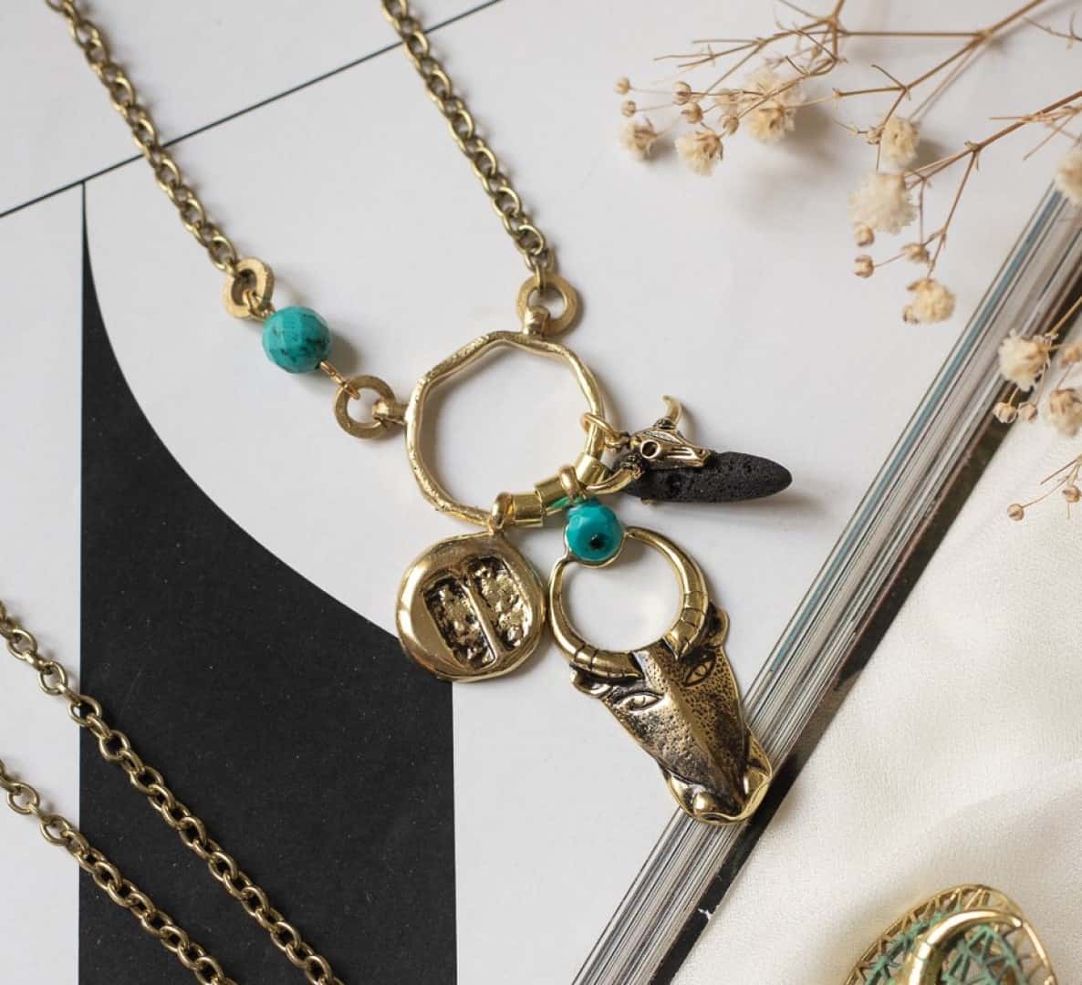 Halskette mit Stierkopf Anhänger Minotaurus