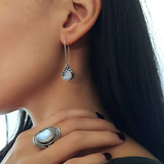 Ring de piedra lunar arcoíris de plata maciza - JAIPUR