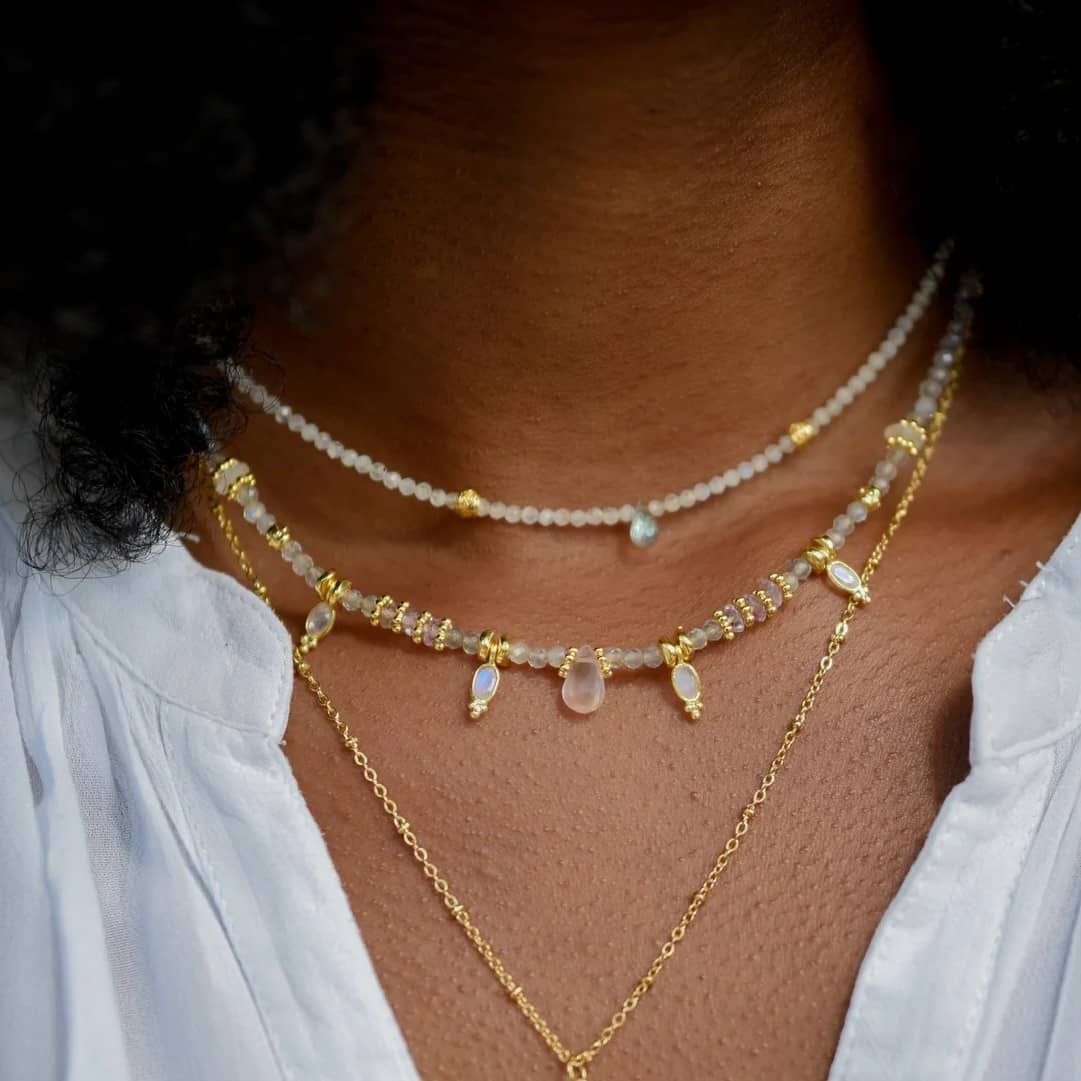 Le collane Moonstone sono una splendida aggiunta a qualsiasi collezione di gioielli. Queste bellissime pietre preziose hanno un'iridescenza naturale che luccica e brilla ad ogni movimento, creando un accessorio affascinante che può completare qualsiasi outfit.