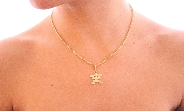Dieses Schmuckstück ist eine authentische Nachbildung der originalen Goldschmiedearbeiten, die im Goldmuseum von Bogotá-Kolumbien ausgestellt sind. Künstlerisch gestaltet mit historischem und kulturellem Wert in der kolumbianischen Werkstatt der präkolumbischen CARIN Industries.